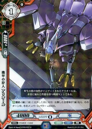 Japanese title: ラクエンロジック/U/使者/赤/[L&L-BT03]ブースターパック第3弾 Spirit & Signal BT03/037[U]:機甲の狩人 アリオール(R仕様)