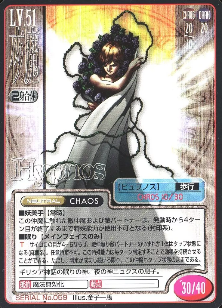 Japanese title: 女神転生(デビチル)カード/夜魔/真・女神転生トレーディングカード 第1弾 SERIAL No.059:ヒュプノス