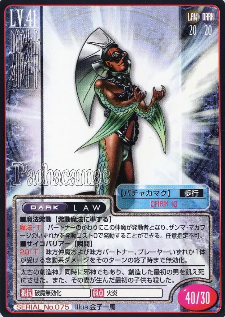 Megami Tensei (Devi Chill) Card / Jakin / Shin Megami Tensei Trading Card, Part 1 SERIAL No. 075 : Pachakamaku