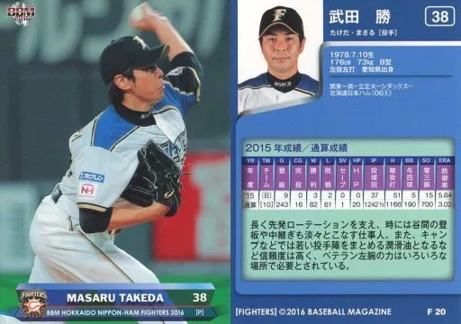 BBM / Regular Card / BBM2016 Hokkaido Nippon-Ham Fighters 20 [Regular Card] : Masaru Takeda