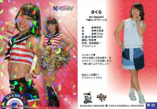 Japanese title: BBM/レギュラーカード/M☆Splash!!/BBM2016 プロ野球チアリーダーカード DANCING HEROINE -華- 華22[レギュラーカード]:さくら(ホロパラレル版)