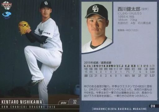 BBM / Regular Card / BBM2016 Chunichi Dragons 18 [Regular Card] : Kentaro Nishikawa