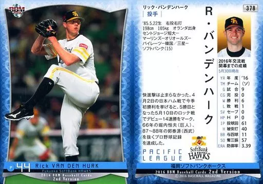 Japanese title: BBM/レギュラーカード/福岡ソフトバンクホークス/BBM2016 ベースボールカード 2ndバージョン 378[レギュラーカード]:R.バンデンハーク
