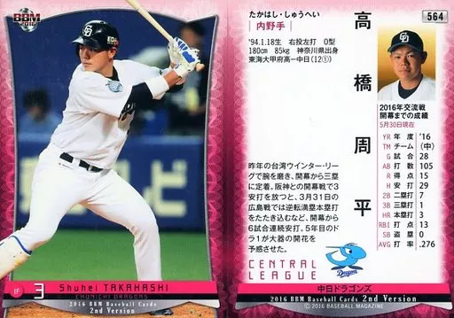 BBM / Regular Card / Chunichi Dragons / BBM2016 Baseball Card 2 nd Version 564 [Regular Card] : Shuhei Takahashi