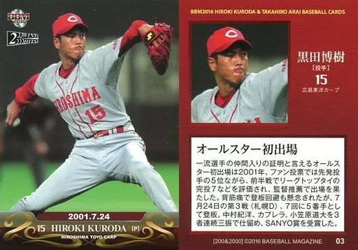 Japanese title: BBM/レギュラーカード/広島東洋カープ/BBM2016 黒田博樹&新井貴浩 200WINS&2000HITS 03[レギュラーカード]:黒田博樹/オールスター初出場