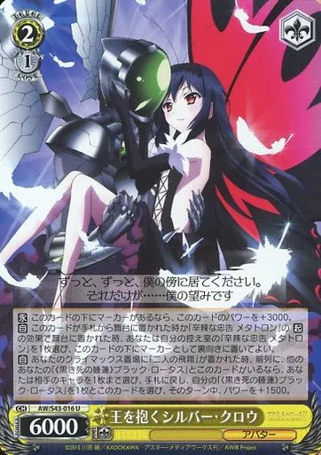 Japanese title: ヴァイスシュヴァルツ/U/キャラ/ブースターパック アクセル・ワールド -インフィニット・バースト- AW/S43-016[U]:王を抱くシルバー・クロウ