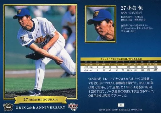 Japanese title: BBM/レギュラーカード/オリックス・バファローズ/BBM2014 オリックス球団25周年記念 04[レギュラーカード]:小倉恒