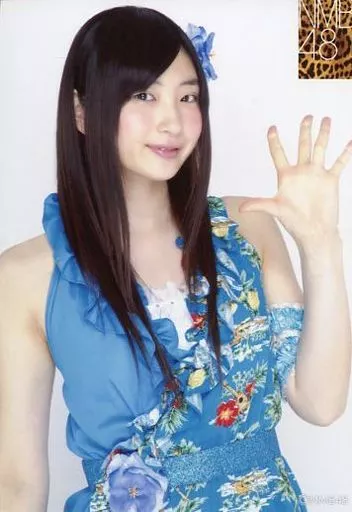 Japanese title: 生写真(AKB48・SKE48)/アイドル/NMB48 岸野里香/上半身・衣装青・花柄・左手パー/個別生写真 第6弾