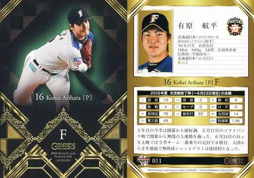 BBM / Regular Card / Hokkaido Nippon-Ham Fighters / BBM2016 Genesis 011 [Regular Card] : Kohei Arihara