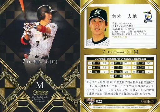 Japanese title: BBM/レギュラーカード/千葉ロッテマリーンズ/BBM2016 ジェネシス 022[レギュラーカード]:鈴木大地