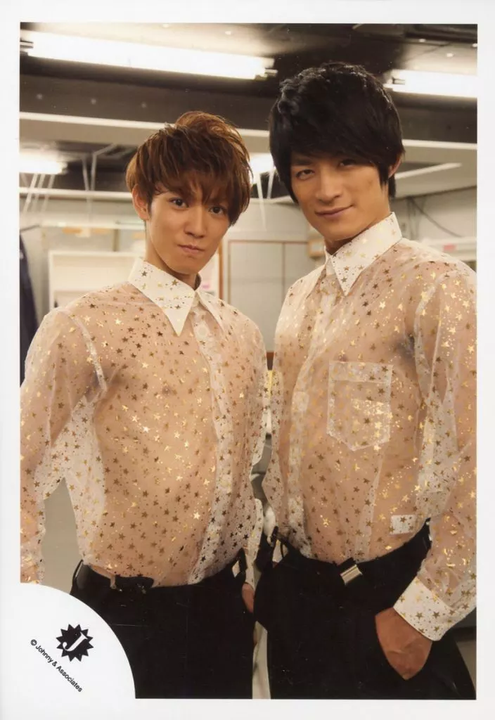 Japanese title: 生写真(ジャニーズ)/アイドル/ふぉーゆー ふぉーゆー/辰巳雄大・松崎祐介/上半身・衣装白・シースルー・ボトムス黒・辰巳 胸張り・松崎 左手ポケット/公式生写真
