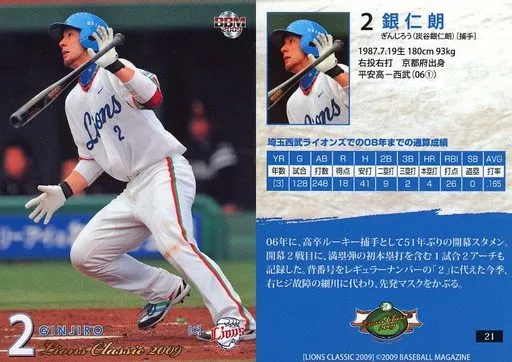 Japanese title: BBM/レギュラーカード/BBM2009 埼玉西武ライオンズ ライオンズ・クラシック 21[レギュラーカード]:銀仁朗