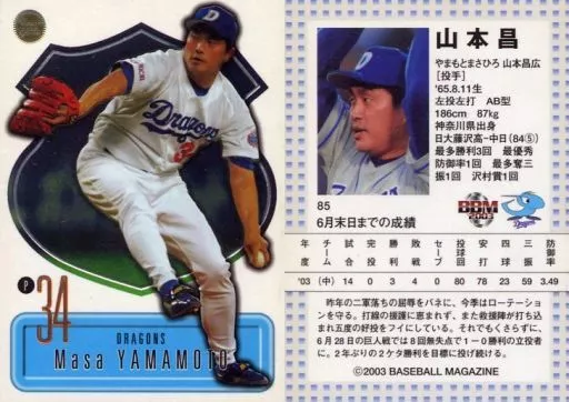 Japanese title: BBM/レギュラーカード/中日ドラゴンズ/BBM2003 Touch the game 85[レギュラーカード]:山本昌