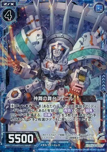 Japanese title: ゼクス/UC/ゼクス/青/第18弾『真神降臨編 覚醒する希望』 B18-028[UC]:神舞の舞台フェニル(ホログラムレア)