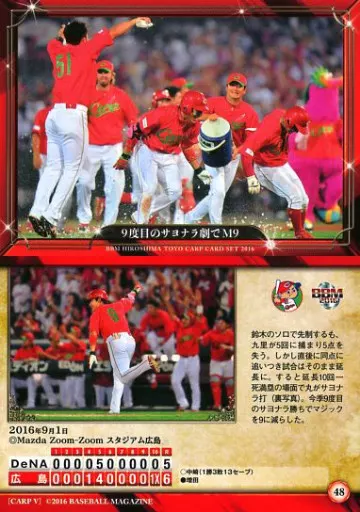 Japanese title: BBM/レギュラーカード/BBM2016 広島東洋カープ 大願成就 48[レギュラーカード]:9度目のサヨナラ劇でM9