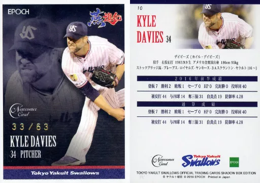 Japanese title: スポーツ/レギュラーカード/東京ヤクルトスワローズ/2016 東京ヤクルトスワローズ SHADOWBOX EDITION 10[レギュラーカード]:デイビーズ(/63)