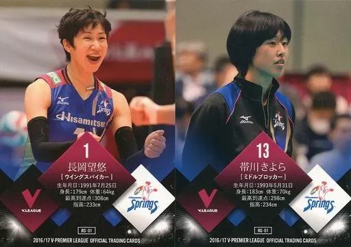 Japanese title: スポーツ/レギュラーカード/2016/17 V・プレミアリーグ女子公式トレーディングカード 01 [レギュラーカード] : 長岡望悠/帯川きよら