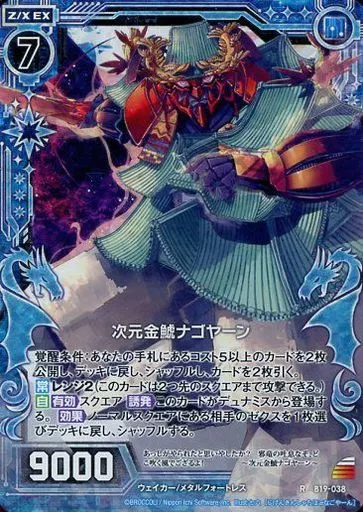 Japanese title: ゼクス/R/ゼクスエクストラ/青/第19弾『真神降臨編 覇神を穿つ者』 B19-038[R]:次元金鯱ナゴヤーン(ホログラムレア)