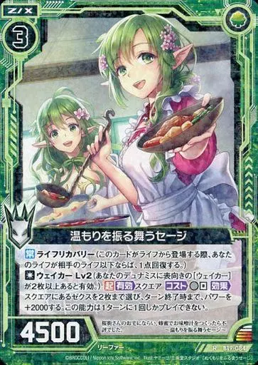 Japanese title: ゼクス/R/ゼクス/緑/第19弾『真神降臨編 覇神を穿つ者』 B19-084[R]:温もりを振る舞うセージ