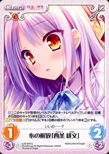 Japanese title: カオス/C/Chara/火/ブースターパック タユタマ & タユタマ2 LoS-245[C]:心の解放「西条 緋文」