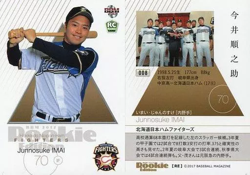 BBM / Regular Card / Hokkaido Nippon-Ham Fighters / BBM2017 RookIe Edition 008 [Regular Card] : Junnosuke IMAI