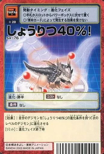 Japanese title: 旧デジモンカードゲーム/プログラムカード/デジタルモンスターカードゲーム アルティメットバトルセット X-進化ボックス Sx-76:しょうりつ40%!