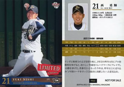 Japanese title: BBM/プロモーションカード/オリックス・バファローズ/BBM2012 オリックス・バファローズ 球場・書店 リミテッドエディション PR03[プロモーションカード]:西勇輝