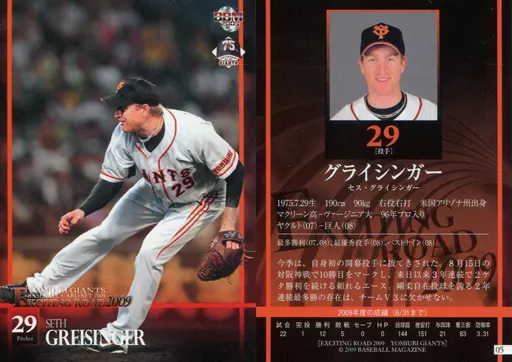 Japanese title: BBM/レギュラーカード/BBM2009 読売ジャイアンツカードセット「EXCITING ROAD」 05[レギュラーカード]:グライシンガー