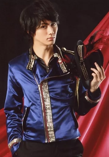 Official photo (male) / actor Motohiro Ota / Above the Knee / Blue Costume / Gold / Left Hand Hat / Face Right / Right Hand Pocket / Background Black Red / Live 「 LUV SLAZY II 」 Bromide Motohiro Ota Set B