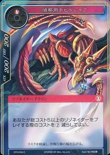 Japanese title: フォース オブ ウィル/C/リゾネイター/炎/ラピスクラスタ第1弾ブースターパック「氷棺の聖女」 CFC-034[C]:(Foil)偵察用チビドレイク