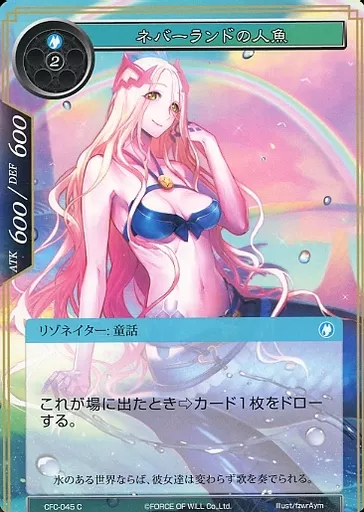 Japanese title: フォース オブ ウィル/C/リゾネイター/水/ラピスクラスタ第1弾ブースターパック「氷棺の聖女」 CFC-045[C]:ネバーランドの人魚
