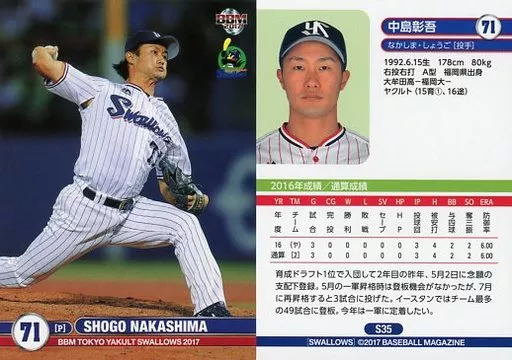 Japanese title: BBM/レギュラーカード/BBM2017 東京ヤクルトスワローズ S35[レギュラーカード]:中島彰吾