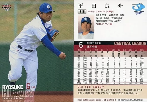 Japanese title: BBM/レギュラーカード/中日ドラゴンズ/BBM2017 ベースボールカード 1stバージョン 316[レギュラーカード]:平田良介