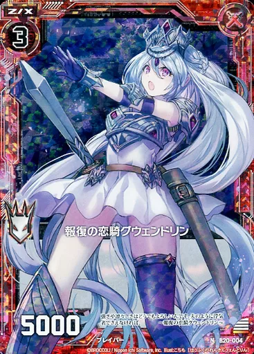 Japanese title: ゼクス/N/ゼクス/赤/第20弾『運命廻放編 祝福の蒼空』 B20-004[N]:報復の恋騎グウェンドリン(ホログラムレア)