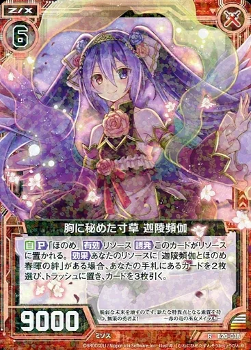 Japanese title: ゼクス/R/ゼクス/赤/第20弾『運命廻放編 祝福の蒼空』 B20-018[R]:胸に秘めた寸草 迦陵頻伽