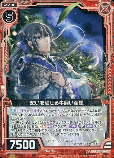 Japanese title: ゼクス/PR/ゼクス/赤/2017年05月~07月 ゼクスタ 参加賞 プロモーションパックvol.1 P20-015[PR]:想いを馳せる牛飼い彦星