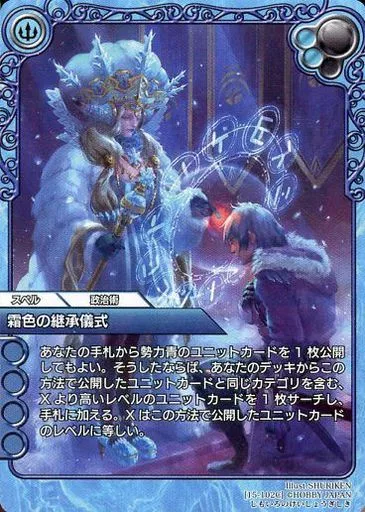 Japanese title: ラストクロニクル/C/スペル/青/ブースターパック 悠久の聖音 15-102C[C]:霜色の継承儀式