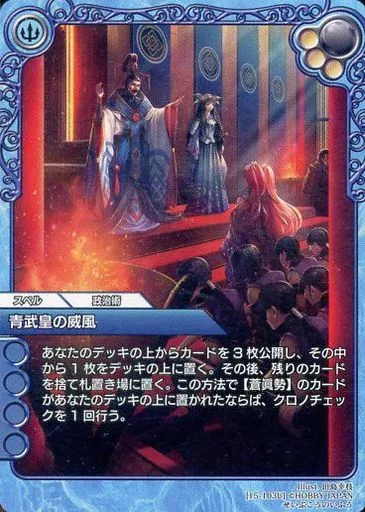 Japanese title: ラストクロニクル/U/スペル/青/ブースターパック 悠久の聖音 15-103U[U]:青武皇の威風