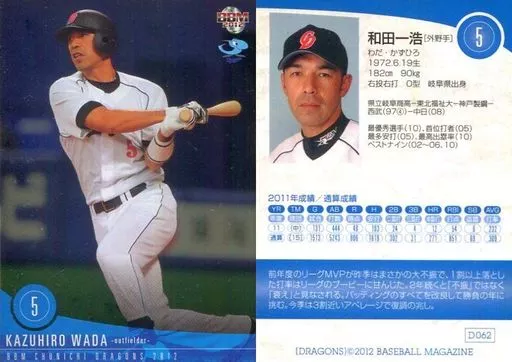 BBM / Regular / BBM2012 Chunichi Dragons D062 [Regular] : Kazuhiro Wada (parallel version)