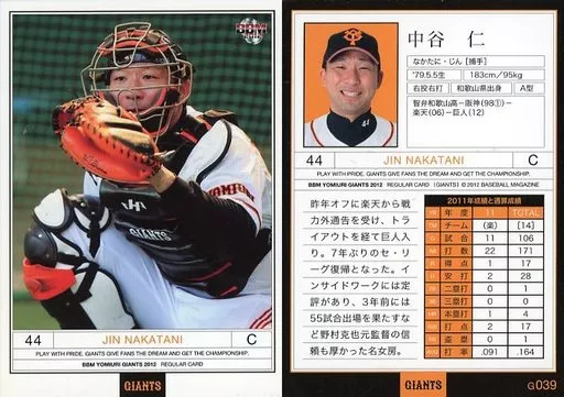 Japanese title: BBM/レギュラーカード/BBM2012 読売ジャイアンツ G039[レギュラーカード]:中谷仁