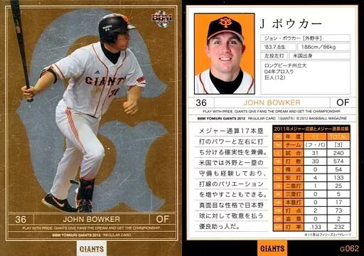 Japanese title: BBM/レギュラーカード/BBM2012 読売ジャイアンツ G062[レギュラーカード]:ボウカー(パラレル版)