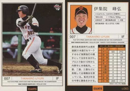 Japanese title: BBM/レギュラーカード/BBM2012 読売ジャイアンツ G083[レギュラーカード]:伊集院峰弘