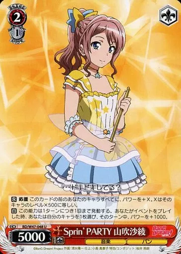Japanese title: ヴァイスシュヴァルツ/U/キャラ/ブースターパック BanG Dream! BD/W47-048[U]:Sprin’ PARTY 山吹沙綾