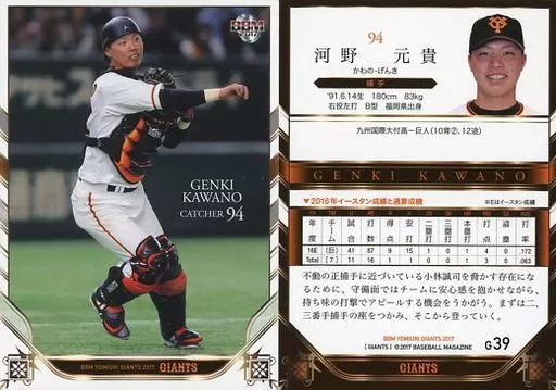Japanese title: BBM/レギュラーカード/BBM2017 読売ジャイアンツ G39[レギュラーカード]:河野元貴
