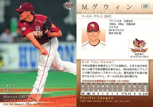 Japanese title: BBM/レギュラーカード/東北楽天ゴールデンイーグルス/BBM2009 ベースボールカード 2ndバージョン 620[レギュラーカード]:グウィン
