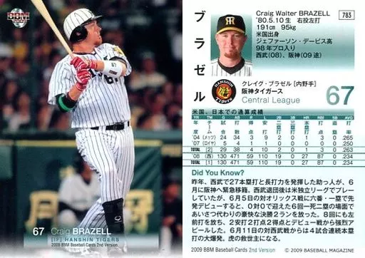BBM / Regular Card / Hanshin Tigers / BBM2009 Baseball Card 2 nd Version 783 [Regular Card] : Braszel