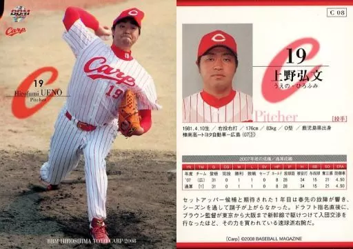 Japanese title: BBM/レギュラーカード/BBM2008 広島東洋カープ C08[レギュラーカード]:上野弘文