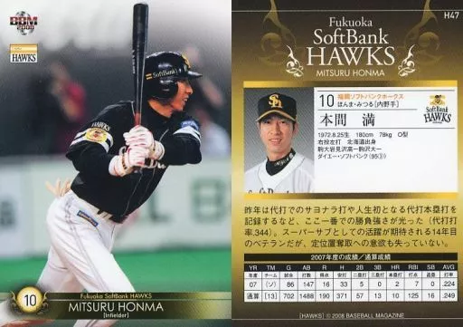 Japanese title: BBM/レギュラーカード/BBM2008 福岡ソフトバンクホークス H47[レギュラーカード]:本間満