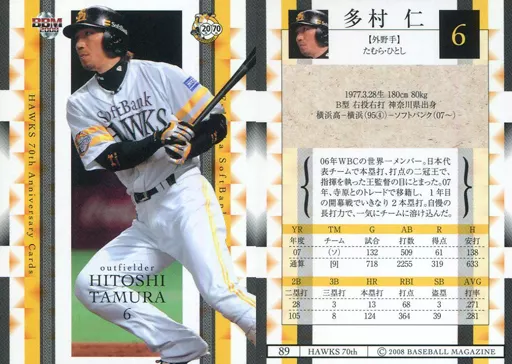 BBM / Regular Card / BBM2008 Nankai Daiei Soft Bank Hawks 70 th Anniversary Card 89 [Regular Card] : Hitoshi Tamura