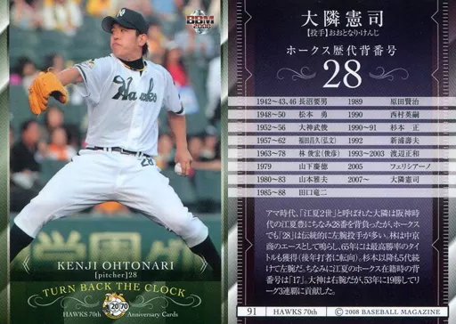 Japanese title: BBM/レギュラーカード/BBM2008 南海・ダイエー・ソフトバンクホークス70周年記念カード 91[レギュラーカード]:大隣憲司